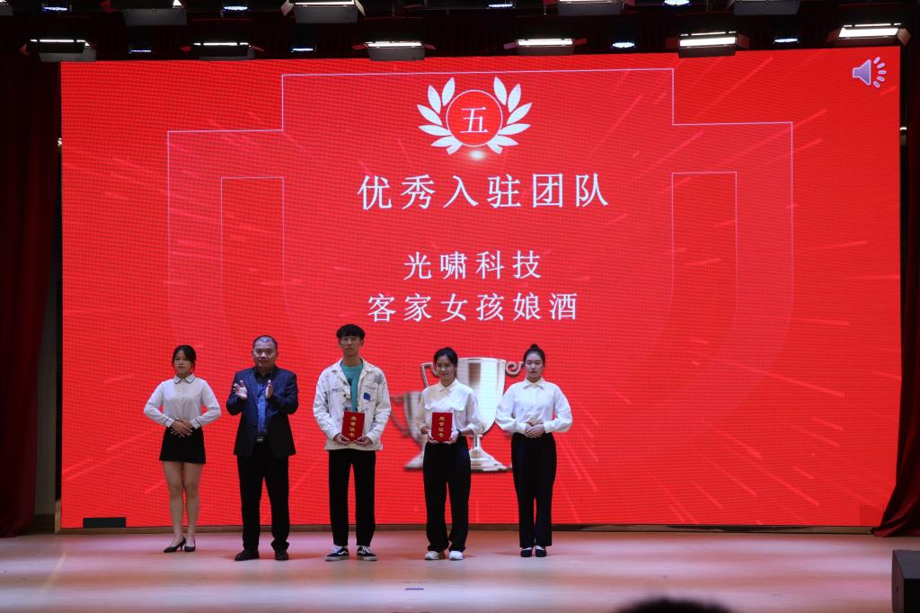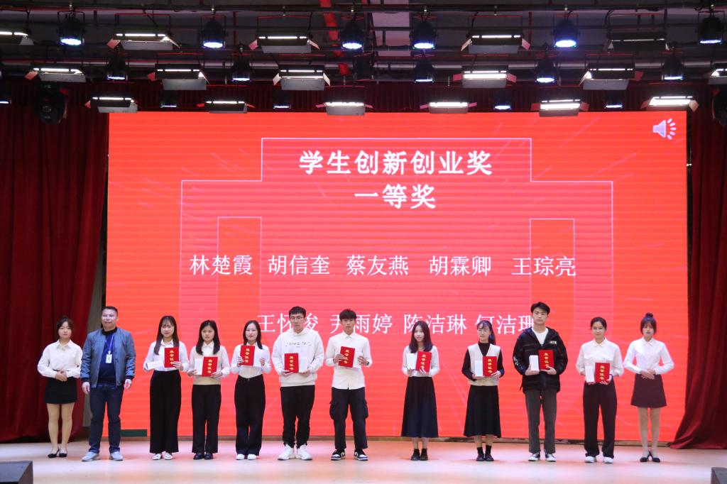 会上,学生管理部部长张志红宣读了表彰决定。曹序棉等36位同学荣获“2020-2021学年优秀双创委员”称号,92位同学获得2020-2021学年学生创新创业奖,其中吴奇隆等5位同学荣获特等奖、林楚霞等9位同学荣获一等奖、黄泽琳等18位同学荣获二等奖、黄武强等29位同学荣获三等奖、蒋楚欣等31位同学荣获优秀奖。光啸科技、客家女孩娘酒荣获优秀入驻团队,计算机科学与工程学院荣获优秀组织奖。