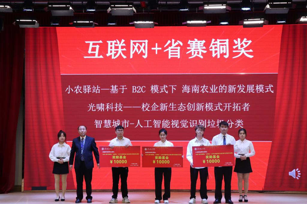 党委副书记、副校长肖海作了讲话,希望管理部门和二级学院坚持立德树人根本任务,贯彻落实学校三全育人布局,全员全程全方位搭建更多平台;希望广大老师积极参与创新创业教育和学科竞赛,帮助学生成才、促进自身专业发展;希望创新创业、学科竞赛与社团活动相融合,青年要发扬“敢为人先放飞青春梦、勇立潮头建功新时代”的精神,争做创新创业的生力军。