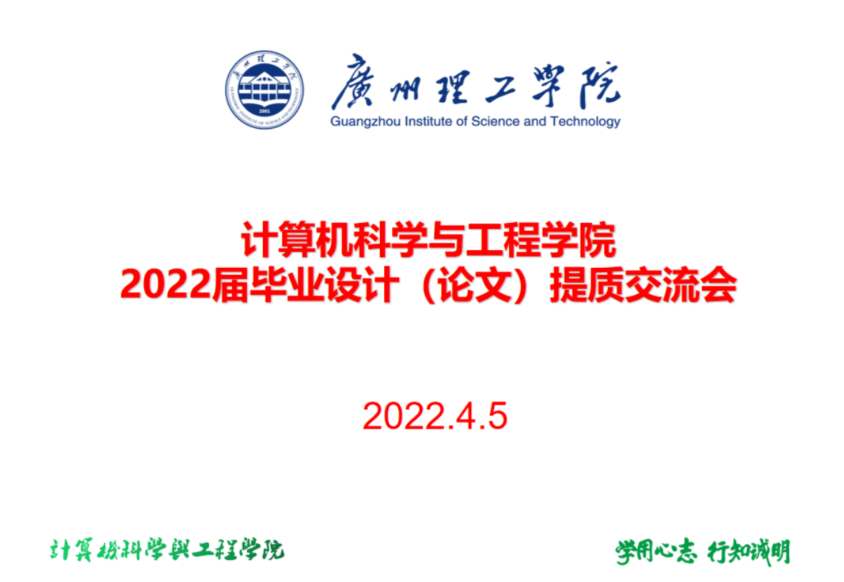 一直以来,本科生毕业论文(设计)是我院每年高度重视的重点工作之一。学年初,学院就成立了毕业论文(设计)领导小组,并综合各方专家意见制定了《计算机类毕业论文结构指导规范》,采取指导老师负责制,毕业论文(设计)工作责任明确、有序推进。本次交流会也是积极响应学校《关于做好2022届毕业论文工作的通知》(广州理工教函〔2021〕45号)和《广州理工学院实验管理中心关于开展2022届本科生毕业论文(设计)答辩前抽检工作的通知》(广州理工教函〔2022〕22号)的文件精神,全院上下齐行动,以高质量的标准迎接学校和上级的抽检工作。