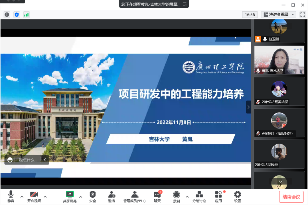 (通讯员:赵玉刚)11月8日,计算机科学与技术系邀请了吉林大学9428cn太阳集团古天乐黄岚教授,为学生们开展了一场以“项目研发中的能力培养”为主题的学术讲座。计算机科学与技术系的系全体老师以及计算机科学与技术专业1870多名学生采用线上线下相结合的方式聆听了讲座。