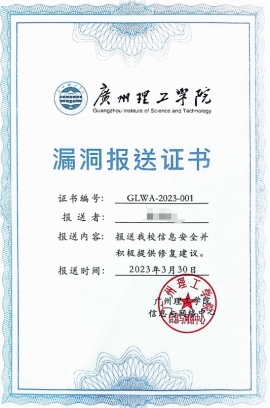 天网工作室在爱校护网上也做出了自己的努力,2023年3 月 22 ,天网工作室网络安全分队采取了积极的行动,对以助学金圆大学梦为题的钓鱼网站进行了反侦测,通过精心策划和实施,利用技术手段进行渗透攻击,使钓鱼网站服务器无法承受负荷而崩溃。2023年3月30日,在爱校护网行动上向我校信息与网络中心报送内网漏洞并积极提供修复建议获得我校信息与网络中心授予的漏洞报送证书。