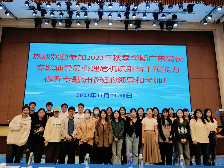 (通讯员:刘闯)11月29日-30日,由省高心委主办的2023年广东高校新任专职辅导员心理健康教育知识与技能提升专题研修班在广东省江门市顺利举行。我院陈彩风、赖彬彬、顾湘云、刘闯4位辅导员老师参加了此次培训。