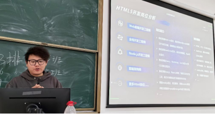 讲座中,贺经理首先深入浅出地介绍了HTML5的基本概念和技术特点,让同学们对HTML5有了初步的认识。同时结合实际应用案例,详细讲解了HTML5如何为现代网页设计和开发带来革命性的变化,以及它如何助力实现更加丰富、交互性更强的网页体验。