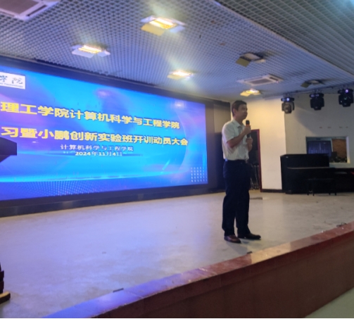 (通讯员:庞晓晓)11月4日上午,我院在6栋报告厅组织2024年专业实习暨小鹏创新实验班开训动员大会。出席会议的有学院全体中层领导和系主任,小鹏汽车科技有限公司夏骐骥经理和校企合作代表一行,还有学院计算机科学与技术专业学生近300人。此次大会旨在为即将参与专业实习的学生提供指导和动员,同时为小鹏创新实验班的开训做好充分准备。