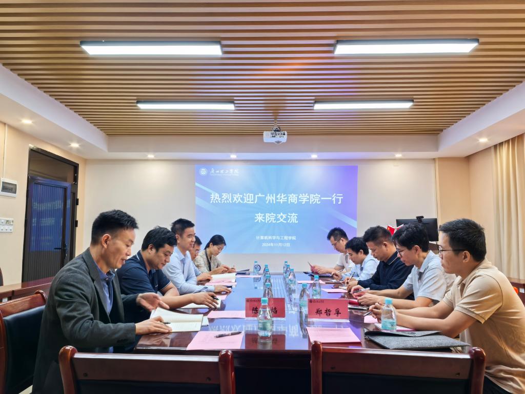 (通讯员:陈星莹)11月12日上午,广州华商学院人工智能学院叶仕通、杨波副院长和系主任一行到校,就教学管理、产教融合、人才培养方案及专业合作等议题进行深度交流。广州理工学院计算机科学与工程学院领导班子及系主任给予了热情接待,双方在友好氛围中展开了富有成效的讨论。