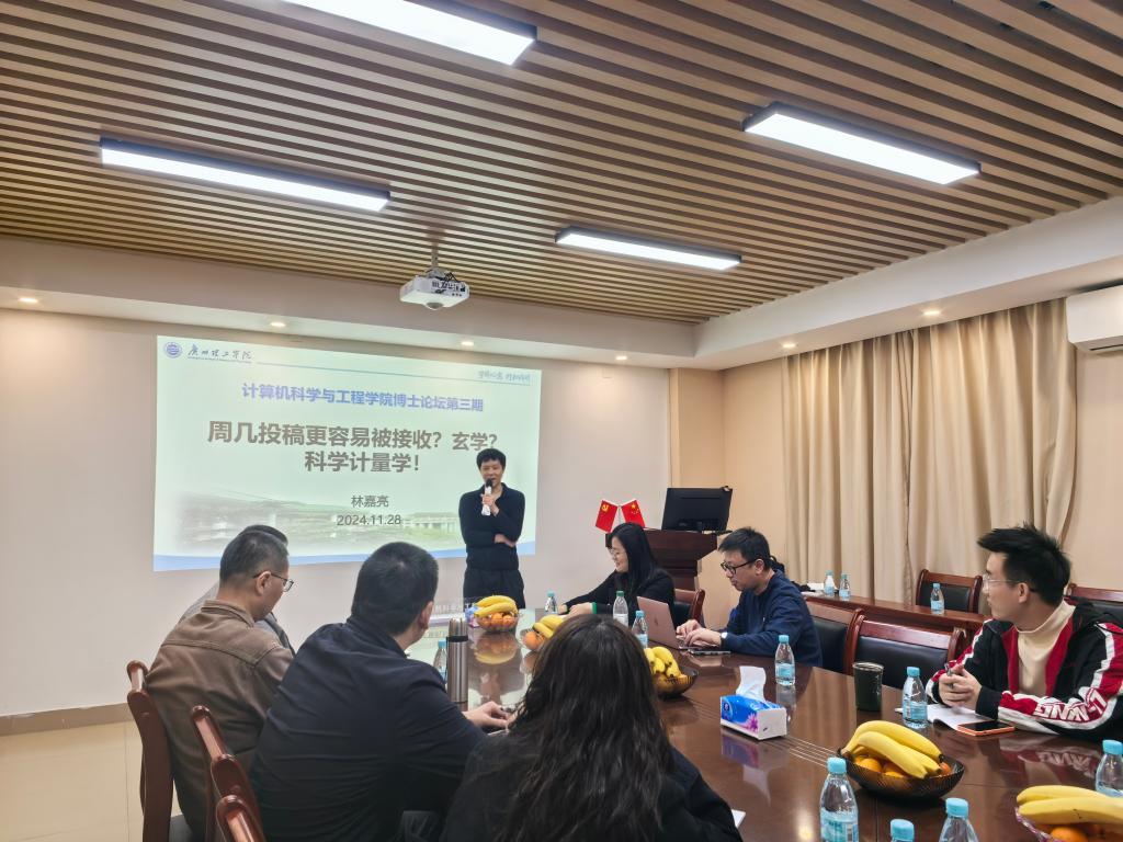 11月28日下午,广州理工学院计算机科学与工程学院成功举办了2024第三期博士论坛活动。论坛以科学计量学为主题,由帽峰青年学者林嘉亮博士主讲,教工党支部副书记陈星莹主持。学院的青年博士和相关科研老师共二十多人参加了论坛沙龙。