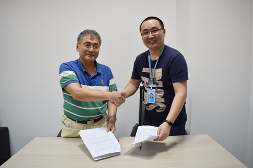 双方还就合作细节达成一致:学院近期会落实宣讲会、职业规划教育和讲座等前期宣传,而后结合具体项目择优选派学生参与;公司会尽快确定具体方案,瞄准行业从业人员基本素质要求,配合相应的技术手段和制度手段助推人才成长。最后,原峰山院长和谢地总经理现场签订了“校外实习就业基地”和“花牵牛软件教育培训中心”的合作协议。