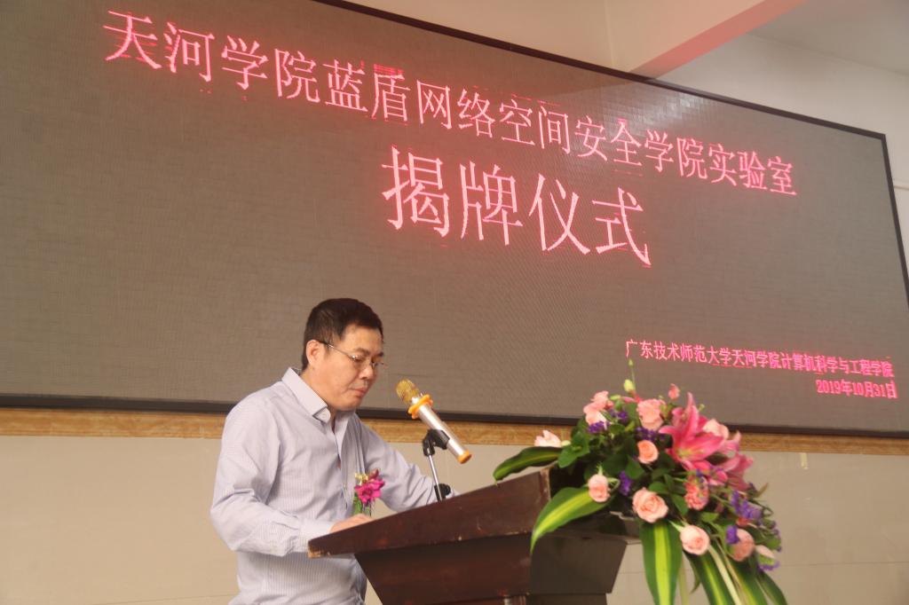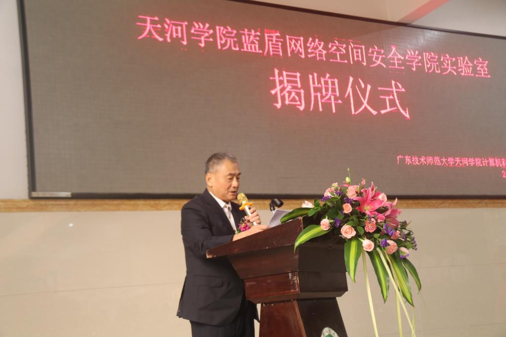 谭海鸥副校长代表学校致辞,对实验室建设过程中蓝盾股份的投入和付出表示感谢和肯定。他表示,天河学院作为一所应用型本科高校,致力于培养能够服务地方经济发展的高素质应用型人才。基于此,我们积极响应教育部和省教厅关于应用型人才培养的号召,联合蓝盾股份共同成立蓝盾网络空间安全学院,努力培养具备较强专业知识和实践能力的应用型人才。谭海鸥副校长表示,按照共建协议,学校将继续和蓝盾股份一起把实验室建设好、使用好、管理好,并努力把蓝盾网络空间安全学院建成省级的示范产业学院。