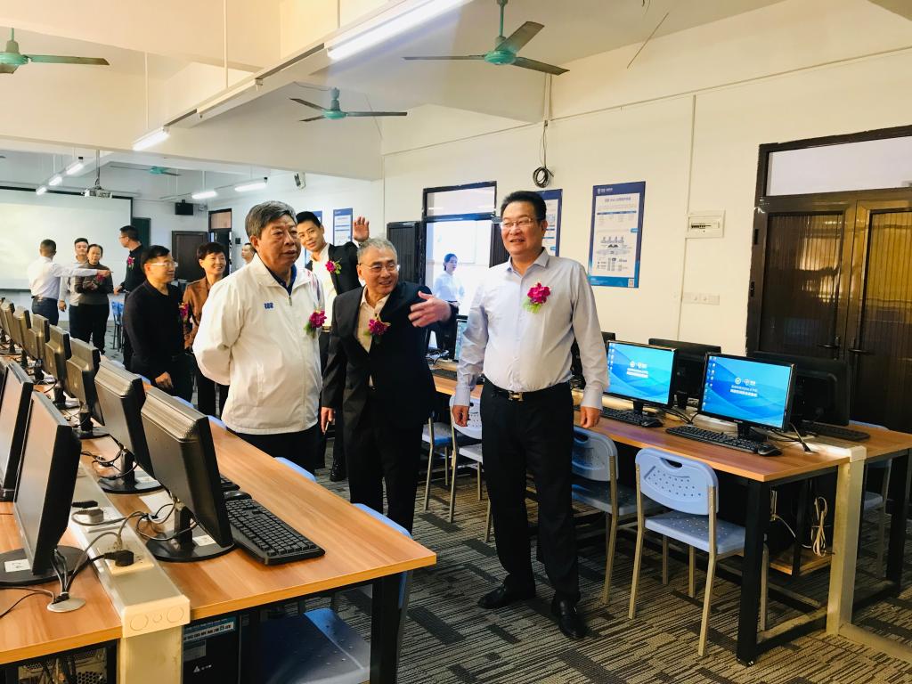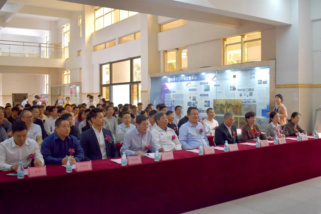 蓝盾股份董事长柯宗庆、高级副总裁兼教育总经理黄泽华、蓝盾学院院长兼教育副总经理李琪辉等企业领导和代表,天河学院副校长谭海鸥、教学与学术事务部部长张世梅、教务处副处长朱亚峰、实验室与设备处副处长钟立华、9428cn太阳集团古天乐院长原峰山等领导和嘉宾出席仪式。