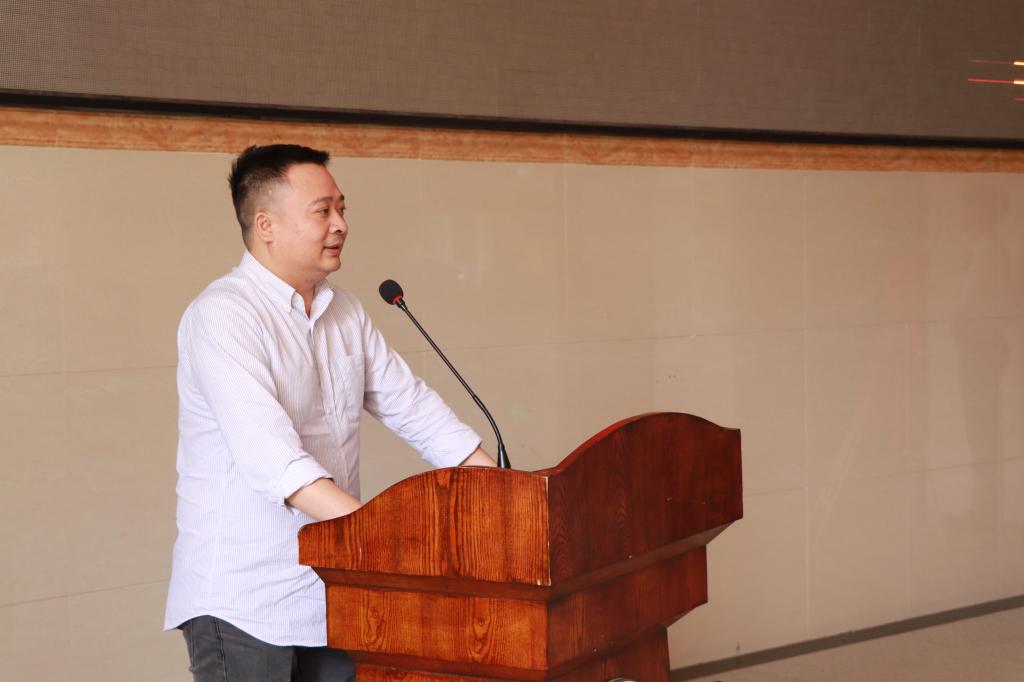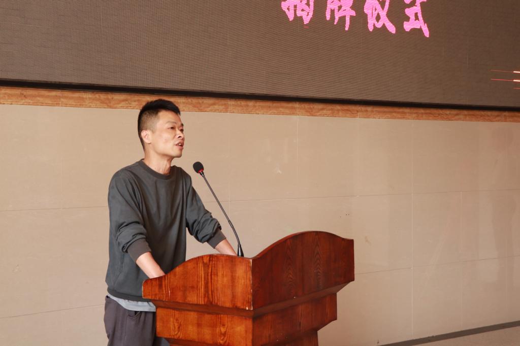 我院院长原峰山代表学院致辞。他对一年多以来广州山河公司领导和数字媒体系老师在工作室筹备和校企合作签约中付出的辛勤努力表示感谢,希望工作室负责的老师能夯实了实践教学的真实有效性,积极创新三全育人的培育模式,希望工作室的学生们能珍惜学习机会,利用企业项目机会,补足课堂教学无法满足的学习短板,增强专业实践深度。