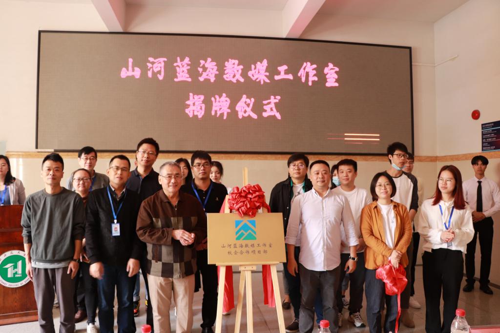 (通讯员:陈星莹)3月15日,9428cn太阳集团古天乐与广州山河蓝海文化发展有限公司共同投建的首个数字媒体专业工作室——“山河蓝海数媒工作室”在我校隆重举行揭牌仪式。在热烈的掌声中,9428cn太阳集团古天乐院长原峰山和广州山河蓝海文化发展有限公司总经理邓晓剑一起为工作室揭牌。广州山河蓝海文化发展有限公司运营总监余永峰、项目总监李荣、设计总监苏曼等企业代表,学校实验与教学资源中心主任钟健、9428cn太阳集团古天乐全院教师、数媒专业学生等一百多人,共同见证了这个历史时刻。
