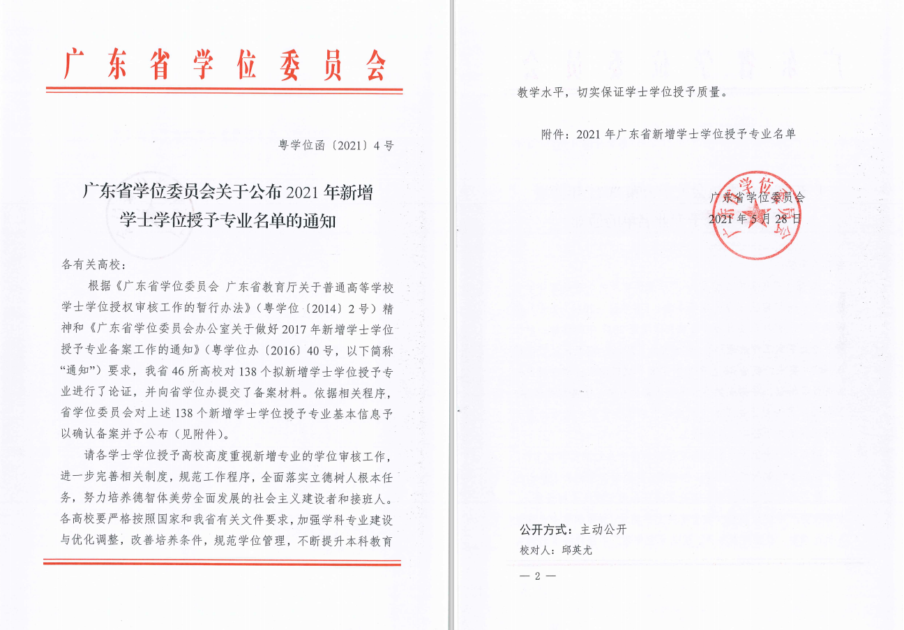 (通讯员:陈星莹)根据广东省学位委员会(粤学位[2021]4号)关于公布2021年新增与撤销学士学位授予专业名单的通知,我院软件工程和数字媒体技术2个专业通过学士学位授予权评估,将从2021届毕业生开始授予学位。