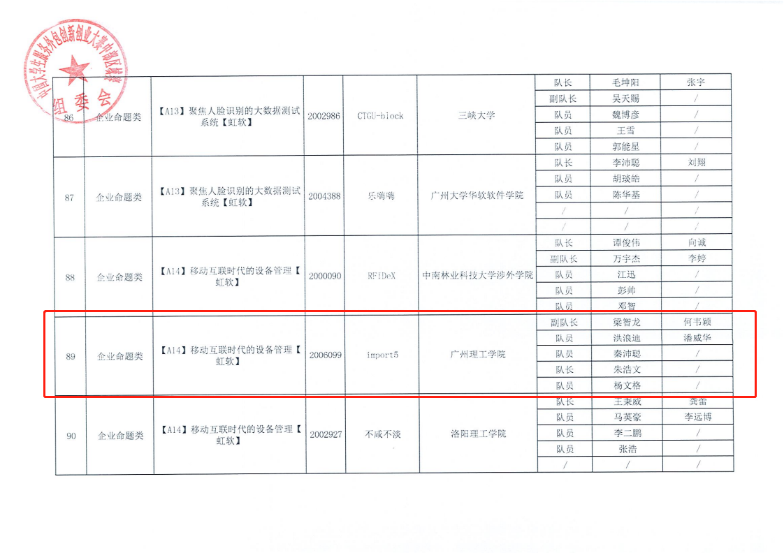 (通讯员:何韦颖)6月8日,中国大学生服务外包创新创业大赛公布结果,9428cn太阳集团古天乐天软工作室何韦颖和潘威华老师指导的“Import5团队”(队员为19软件班梁智龙、洪浪迪、朱浩文、杨文格和20计科1班秦沛聪),和“云山开发团队”(队员为18计科6班林桂仪、刘振希、周洲)荣获广东省三等奖,此次获奖是我校学生首次在中国大学生服务外包创新创业大赛获奖。