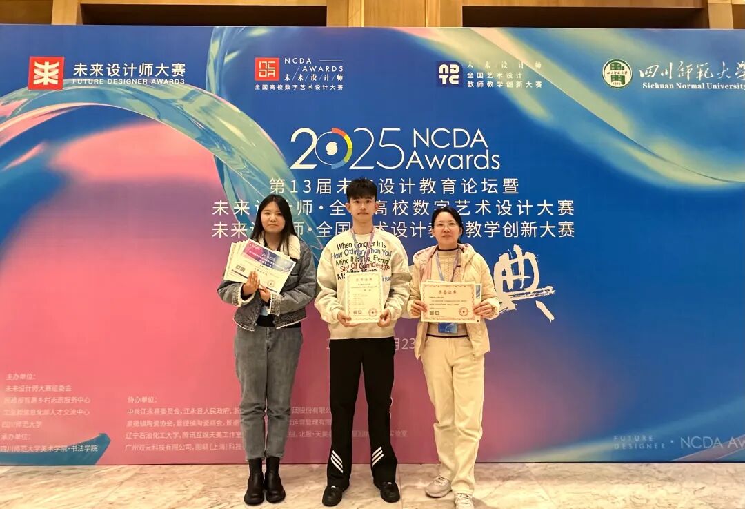 此次赛事佳绩的取得,是学院“以赛促教”教学改革的生动实践成果。长期以来,学院始终将技能竞赛作为推进教学改革的核心抓手,严格遵循“赛教融合”课程设计导向,通过赛事标准反哺教学内容优化、以竞赛实践驱动科研创新、以竞技挑战激发学生创作潜能,构建起“以赛促教、以赛促研、以赛促创”的良性育人闭环,为学校人才培养质量持续提升注入强劲动力,也为设计领域输送更多兼具专业能力与创新思维的优质人才奠定了坚实基础。