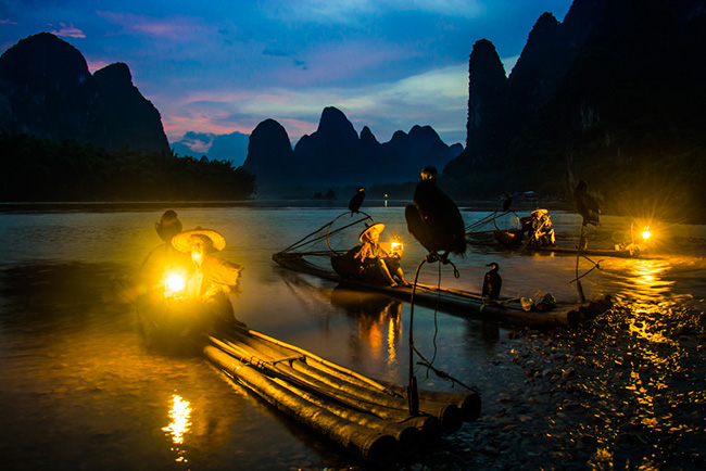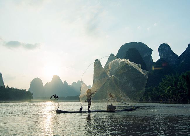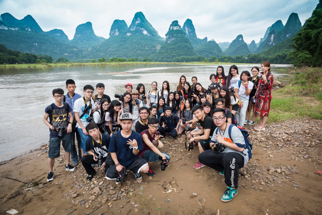 在黄姚逗留了2天,大家转战山水富饶的兴坪古镇。在此,可以欣赏到人民币20元背面图案的山水风景,游经漓江,认真地听取老师对风景、建筑等专题等关于创作、构图、色彩与光影的运用作出示范、指导。
