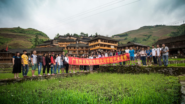 此次采风分别去到了广西的黄姚古镇、兴坪古镇和龙胜梯田。第一天,在经历5个多小时的车程后到达贺州市有九百多年历史的黄姚古镇。天公不作美,下起雨,但丝毫没有减少同学们拍摄写生的热情。大家欣赏美景的同时也认真倾听着老师的现场指导。