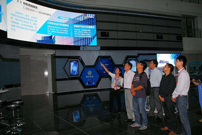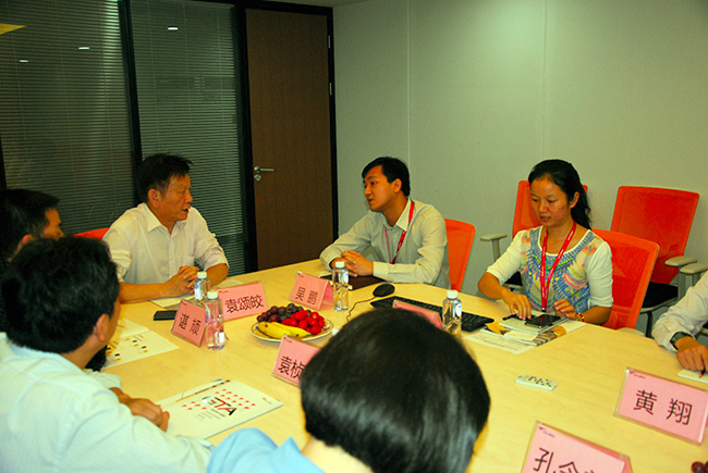 结束了申铭公司的调研之后,一行人又马不停蹄地奔赴深圳国泰安公司。5日下午,到达目的地后,公司信息化事业部专业顾问冯星艳接待了考察组,并带领了考察组成员参观了国泰安文化及产品展厅、职业教育与产业发展研究所(中国教育创新研究所)、软件开发工作室。在参观过程中,各位老师纷纷结合学校、学院的专业教学和教研科研工作提出问题,冯星艳顾问都一一做了回答。随后,在公司会议厅双方举行了座谈会,国泰安公司计算机教育事业部群、软件工程与编程技术部常务副总经理吴鹏主持了这次会议。座谈会中,吴鹏详细介绍了国泰安公司的“计算机专业建设整体解决方案”和“计算机实训室群建设方案”。各位老师也对其方案中教学模式、课程体系、学制安排、实训建设等内容表现出了极大的兴趣,纷纷表示对目前的“学分制”改革工作提供了极大的参考价值。同时,考察组也结合学院的专业咨询了企业方在招聘时较为关注学生的哪些专业技能和人员素养,以及对学校培养学生有何建议等方面的问题。最后,双方都明确表示将加强沟通联系、深入探索“校企合作”新思路。