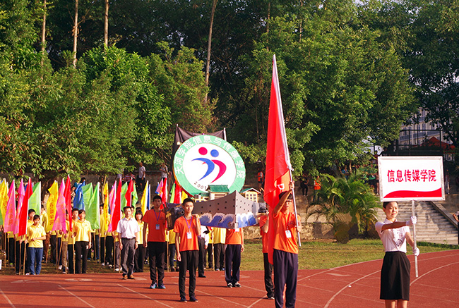 11月20日,学校第十三届校运会拉开帷幕,开幕式上代表各学院的领导老师带领着整齐有序的彩旗方队步入大田径场。随后由校领导致辞,宣布校运会的正式开始,并进行了会操以及舞蹈表演。其中信息与传媒学院学生充满活力,积极参与各项田径项目,为校运会增添光彩。