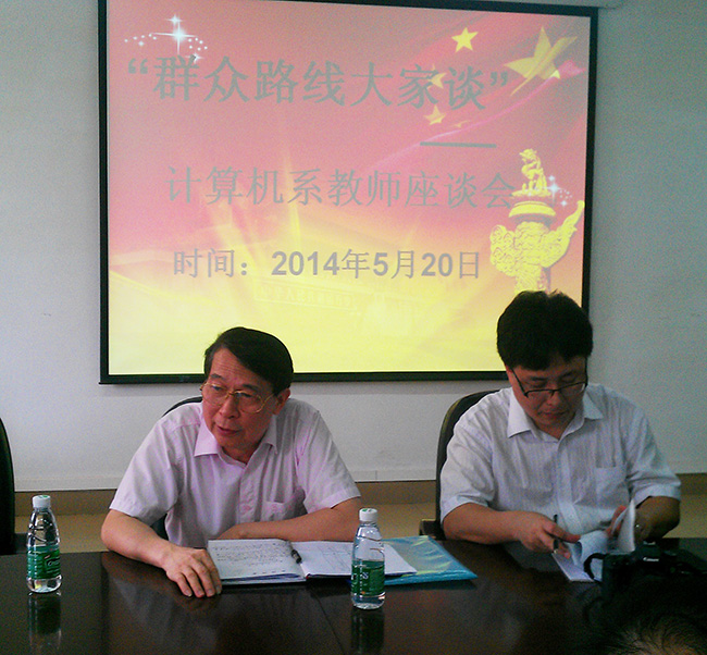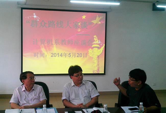 为深化党的群众路线教育实践活动,听取广大教师意见,推动学院科学发展,计算机系党总支于2014年5月20日组织召开了“群众路线大家谈”—计算机系教师座谈会。副院长王祖益、党群工作部部长黄菲青,计算机系13名教师代表出席了会议。