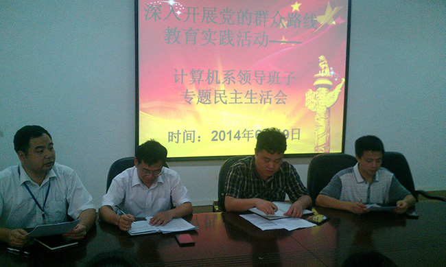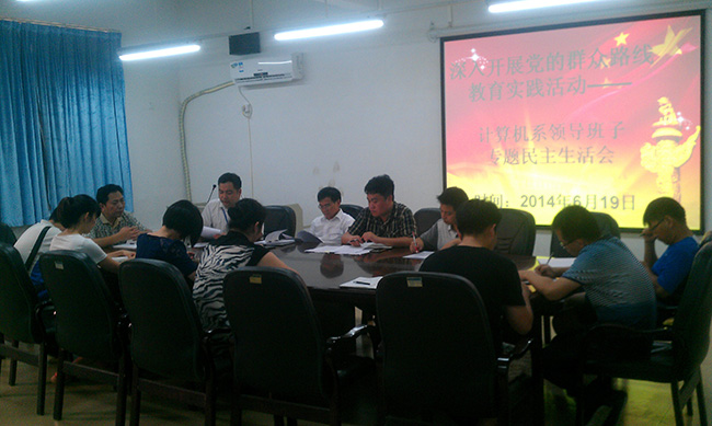 2014年6月19日,计算机系在系会议室召开领导班子专题民主生活会。学院党群工作部副部长陈朝阳同志到会指导,系专业负责人、教研室主任、党总支成员、教师代表共13人出席了本次会议,会议由党总支书记彭康煜主持。