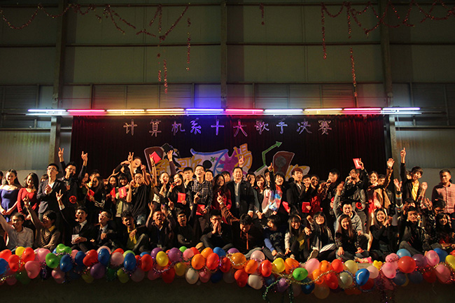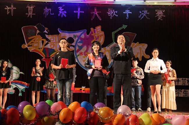 2013年12月10日晚,计算机系“劲歌飞扬,音为有你”十大歌手决赛首次在体育馆隆重举行.本次活动邀请了计算机系党总支书记彭康煜书记、系办主任袁祯强主任、计算机系刘晓萌教授、学保部老师蔡晓赛和伍小英、计算机系团总书记何祉谕书记、计算机系辅导员吕在艳老师、马伟老师担任嘉宾,经过两轮的筛选,有12名选手进入了本次的决赛。