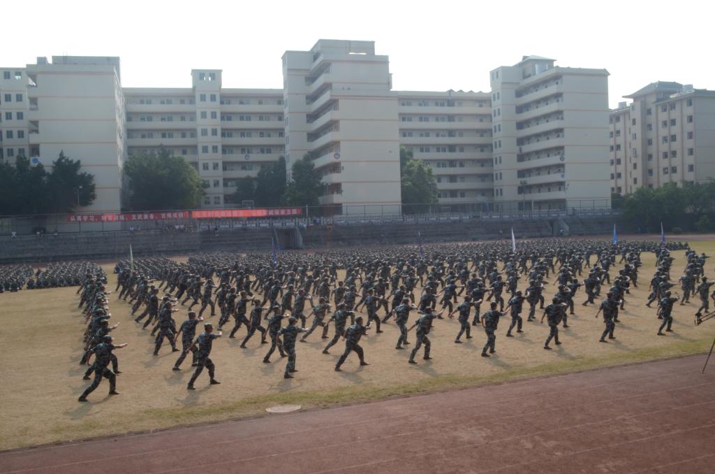9月23日,2016级新生军训会操在大足球场顺利举行。本次活动出席的领导有:党委书记胡思虎、校长王玉潜、常务副校长王祖益和军训团团长黄均等。