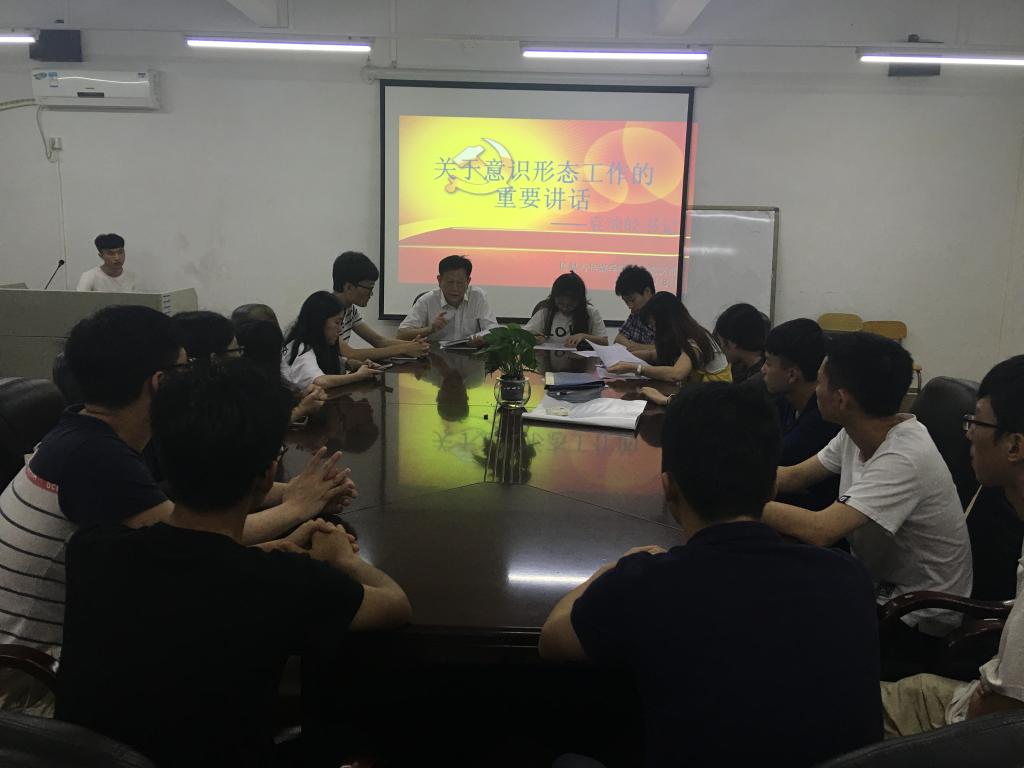 2017年5月8日晚,信息与传媒学院全体学生党员在教师会议室召开学习《意识形态工作的重要讲话》的精神。参与本次会议的成员有信息与传媒学院党总支书记袁颂皎、学生党支部专职学生党务干事黄鸿鑫老师及全体学生党员。