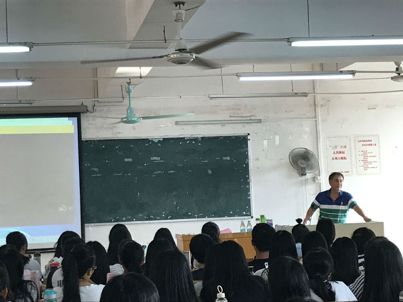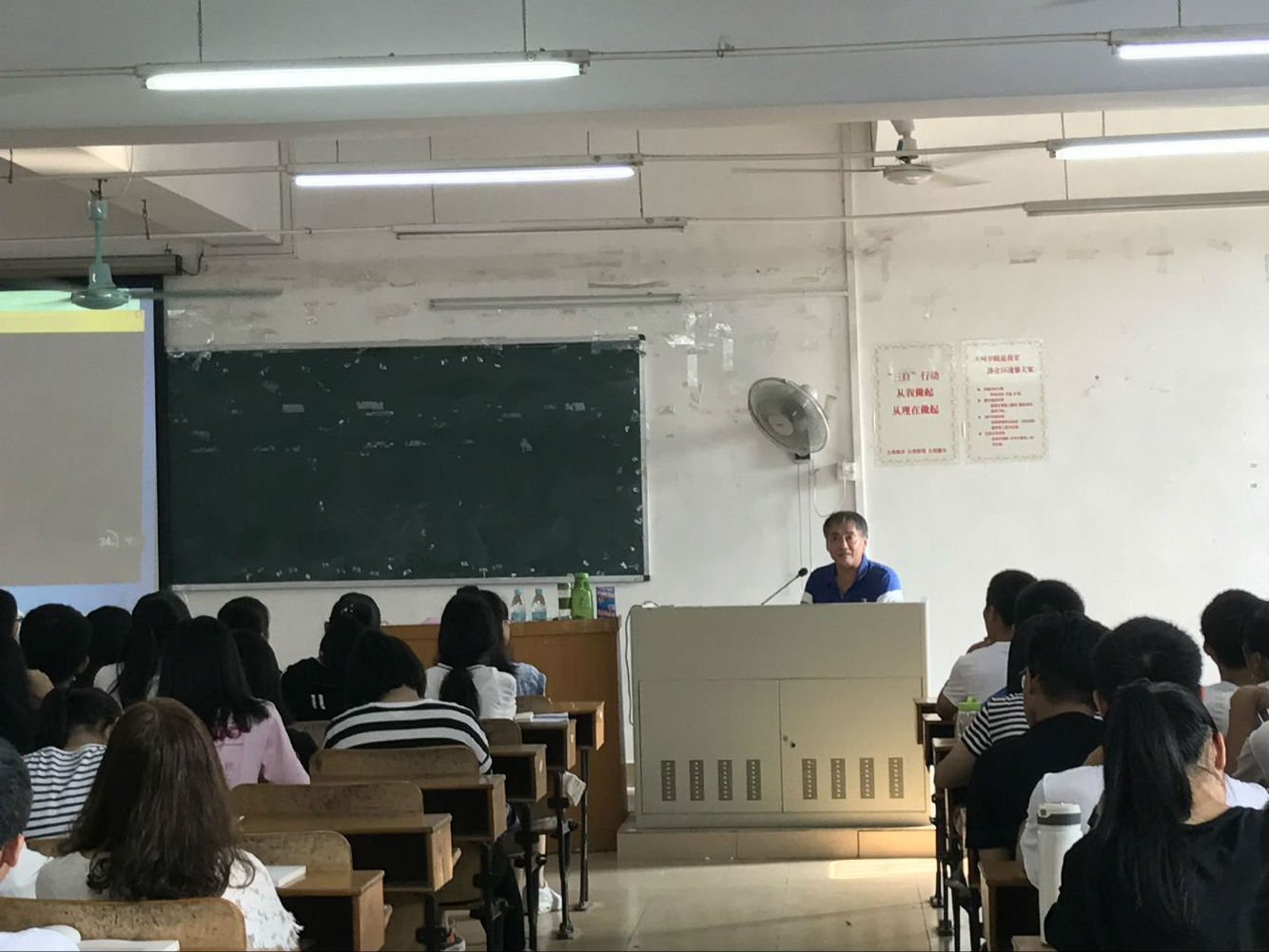 9月26日、27日,9428cn太阳集团古天乐院长袁峰山教授在7-418教室为17级数字媒体技术专业同学上了一堂题为《如何规划好大学四年的时光》的专题教育课,党总支书记袁颂皎同志在4-101教室为17计科专业同学讲了一堂题为《如何做一名遵规守纪的大学生》的专题教育课。