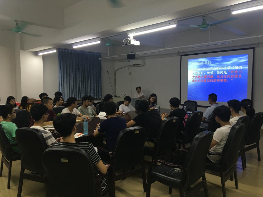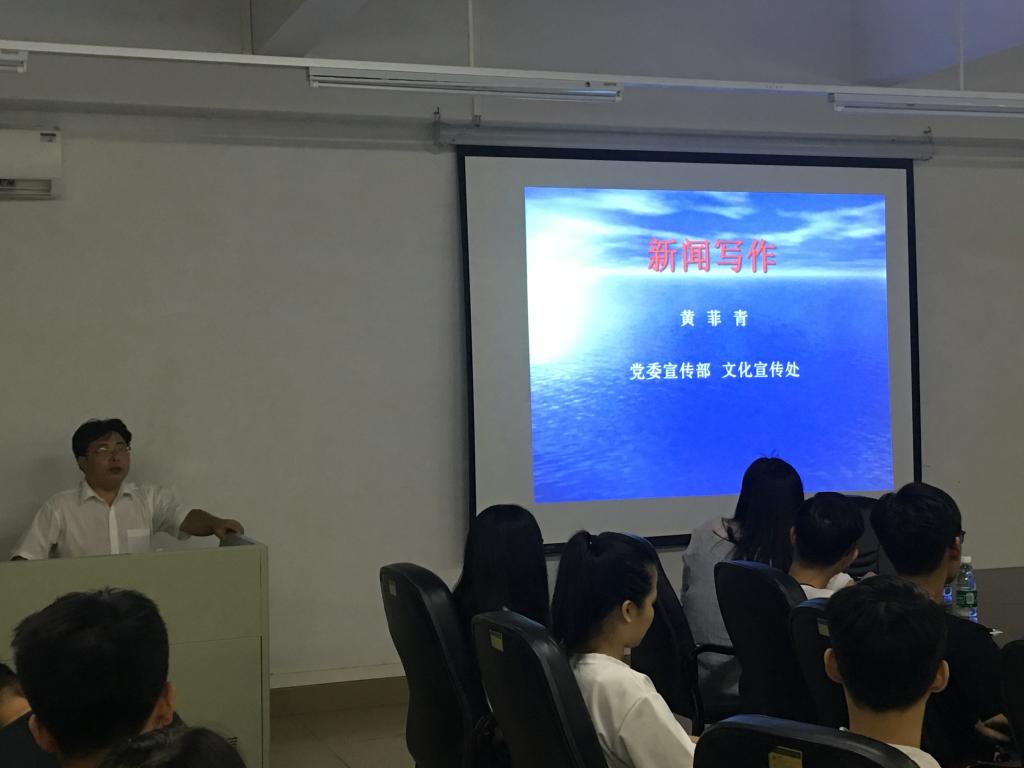 (通讯员 陈星莹)5月30日晚,9428cn太阳集团古天乐在11栋302会议室组织了一场关于新闻稿写作的培训,本次培训由党委宣传部部长黄菲青主讲,党总支刘亮书记、办公室陈星莹主任、辅导员老师和学生党员、学生会干部、各班班干部、工作室共40多人一起参加了本次培训。