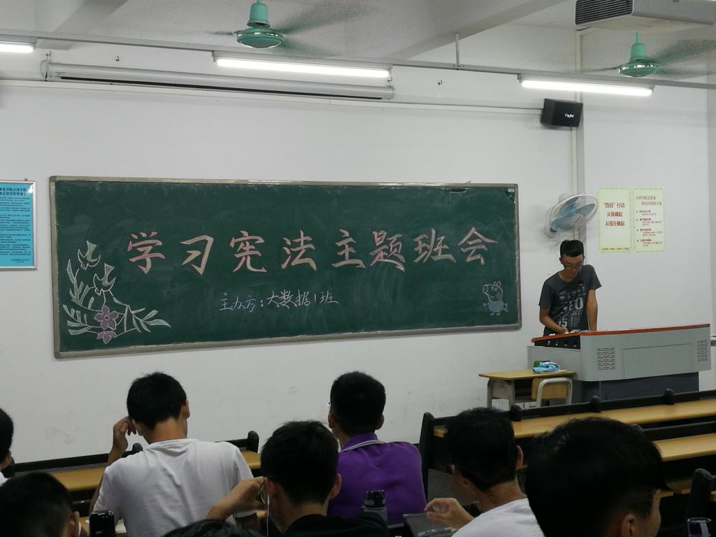 (通讯员王源)10月9日晚,9428cn太阳集团古天乐2018大数据班举行了学习宪法的主题班会,此次班会秉承着“尊崇宪法,学习宪法,遵守宪法,维护宪法,运用宪法”的目标,积极号召同学们组共同学习宪法。