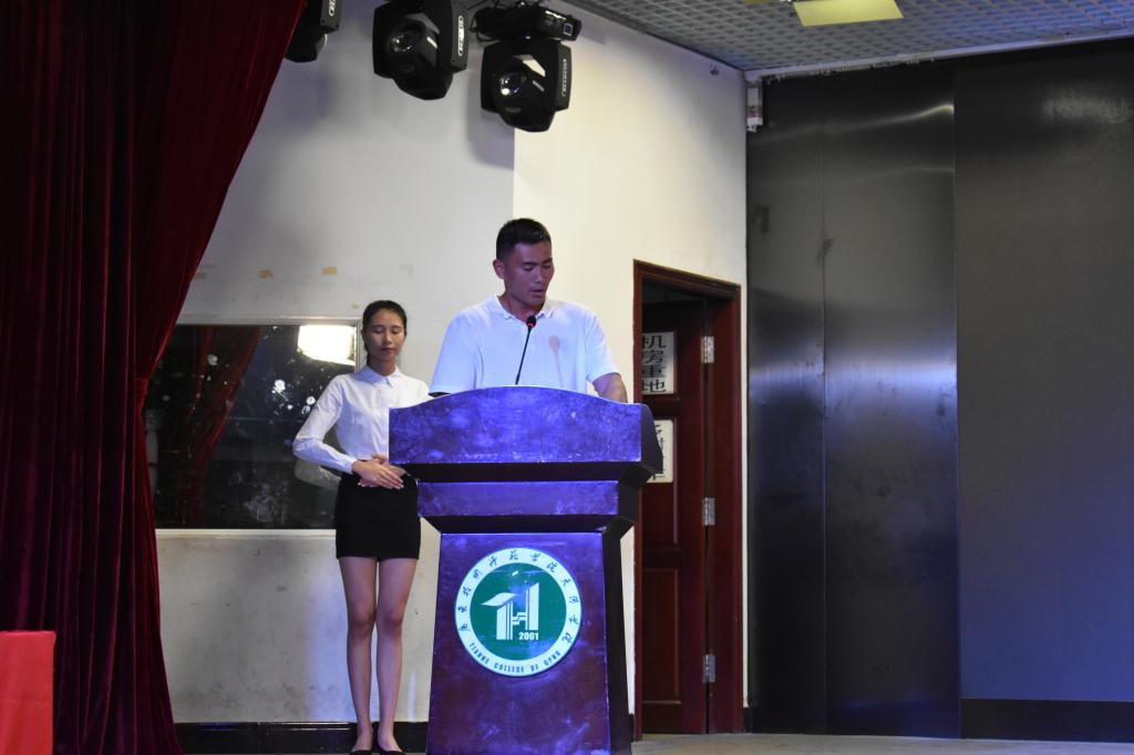 大会的第五项议程是颁奖环节,办公室主任陈星莹代表学院宣读了2017-2018年度学生干部表彰名单,校团委彭文刚书记和学生处杨惠副处长等对2017-2018年度工作积极分子、先进个人、先进部门进行颁奖。党总支刘亮书记、谌颃副院长等学院领导代表对2017-2018年度干部颁发聘书。
