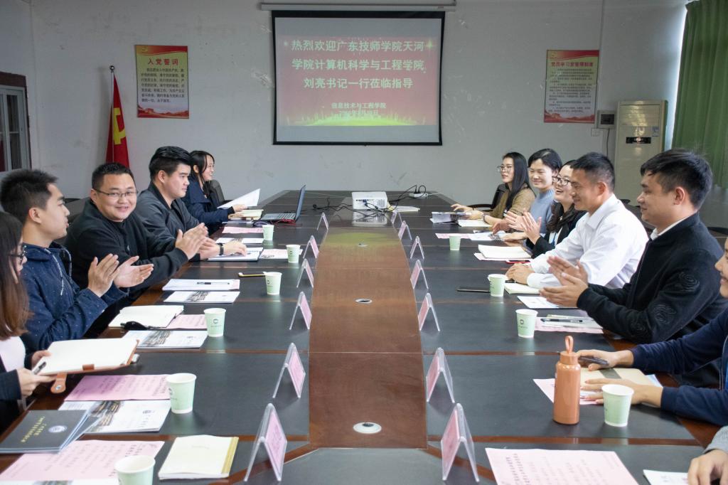 (通讯员 刘思思)3月13日下午,9428cn太阳集团古天乐党总支刘亮书记带领学管团队,前往广州商学院交流学习,广州商学院信息技术与工程学院党总支书记林俊杰携学管团队成员和学生会代表热情接待了我们。