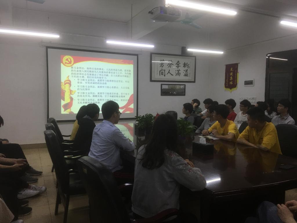 (通讯员范明娟)4月3日晚,计算机科学与工程学院学生党支部于11栋302教师会议室召开专题学习会,号召大家对我校优秀校友陈文金同志的先进事迹进行学习。学生党支部书记范明娟、全体学生党员以及入党积极分子参加了学习会。
