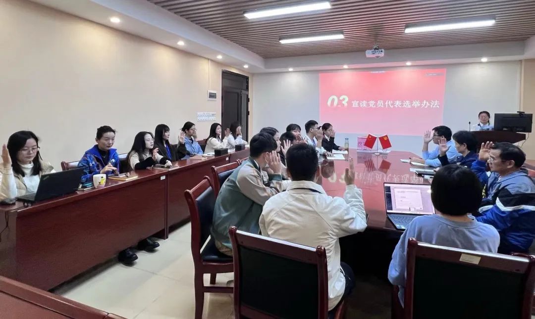 会议由全体党员起立奏唱国歌始。为保证本次选举公平公正,主持人首先宣读支部选举办法,并由全体党员进行举手表决。经决定,选举采用无记名投票、差额选举的方式,与会党员认真填写选票。经计票人统计,最终有16位同志当选为中共广州理工学院第一次党员代表大会代表。教工代表名单(按姓氏笔画顺序为序排列):毛养红(女)、王煜林、伍秋谱(女)、李珂珂(女)、宋莹莹(女)、张世梅(女)、张倩云(女)、陈健、陈星莹(女)、陈易平、杨卓艺(女,侗族)、钟卓玲(女)、蔡岳良、樊继慧(女)。学生代表名单(按姓氏笔画顺序为序排列):邓强、邱生全。