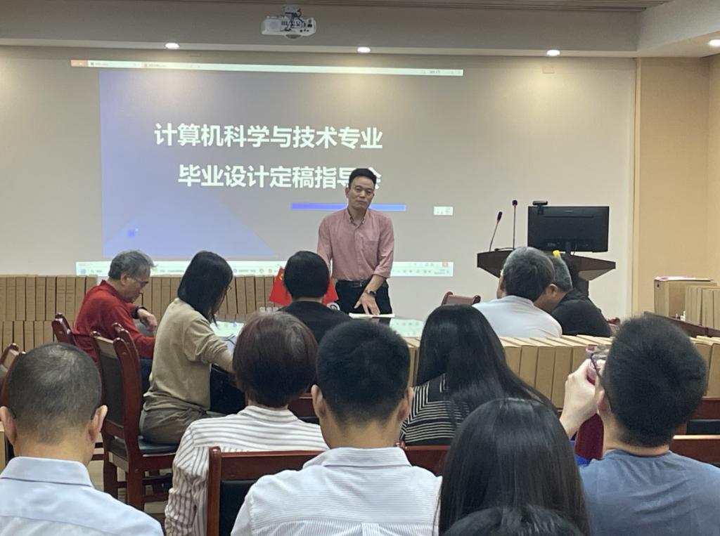 (通讯员:李粘粘)为严格把控2025届本科生毕业论文质量,优化毕业设计管理流程,我院计算机科学与技术专业于3月13日在信息楼303会议室召开毕业论文定稿指导会议。此次指导会围绕教学大纲修订、论文定稿规范、评审机制优化等议题展开深入讨论,明确具体实施细则与工作节点。会议由计算机科学与技术系赵玉刚主任、陈焰副教授主持,计算机科学与技术专业全体教师参会。