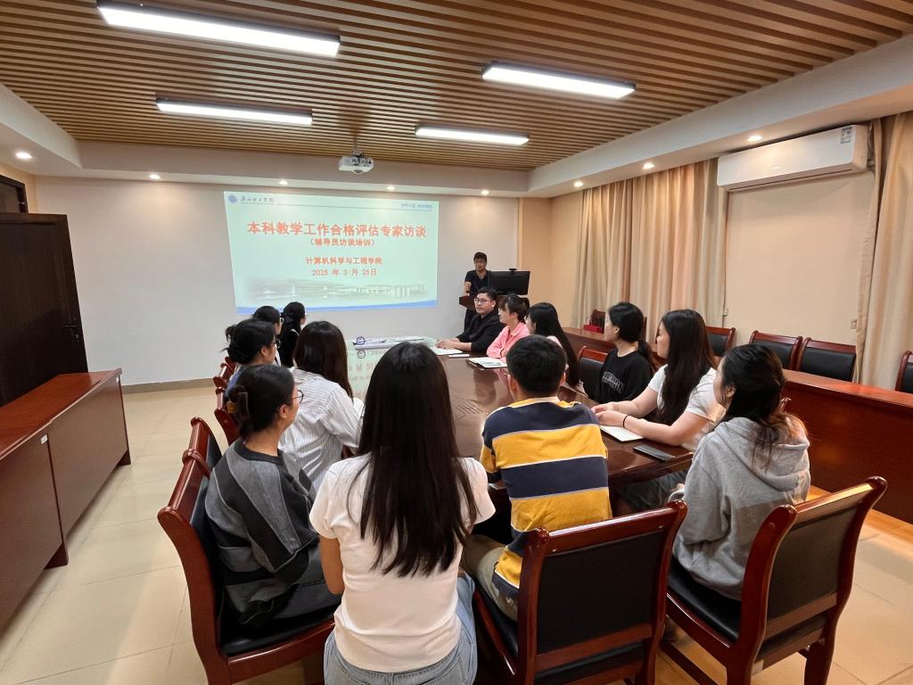 (通讯员:蔡岳良)3月25日,为迎接教育部本科教学工作合格评估,全面提升教育教学质量,计算机科学与工程学院于信息楼303室组织开展了本科教学工作合格评估专家访谈(辅导员专场)培训会。本次培训以“以评促建、以评促改、评建结合”为指导,聚焦辅导员在评估中的关键角色,系统梳理评估要点,强化学生管理与服务能力,为学院高质量发展注入新动能。