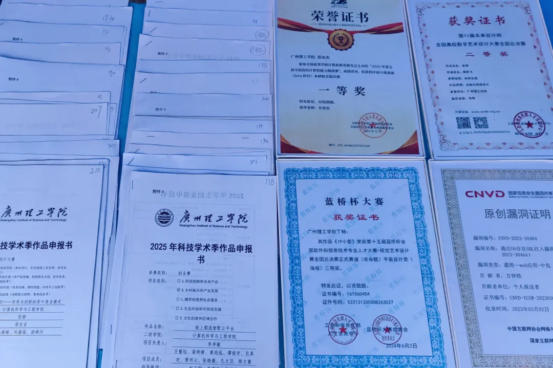 展区内,陈列着我院学子在各项比赛中获得的荣誉证书,见证着学子们从理论到实践、从创意到落地的成长足迹。一张张荣誉证书,既是学子们在各项科技赛事中奋斗足迹,也是我院科技创新育人的坚实成效。每一份荣誉的背后,凝结着团队日夜兼程的汗水与执着求索的信念,更是从理论积淀迈向实践突破的生动注解。