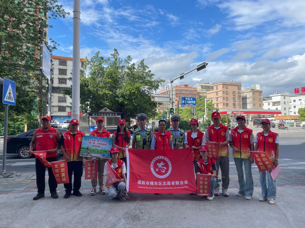 (通讯员:吴恩、陈梓悦)7月5日,广州理工学院萤火突击队积极响应“百千万工程”号召,联合揭阳市民生志愿服务队开展文明交通环保主题宣传活动,以实际行动助力揭阳市文明城市创建工作,提升市民文明素养。队员们充分发挥青年志愿者的先锋作用,通过专业培训、文明劝导和环保宣传,为城市文明建设注入青春动能。