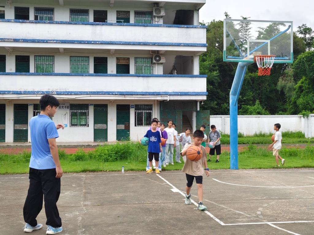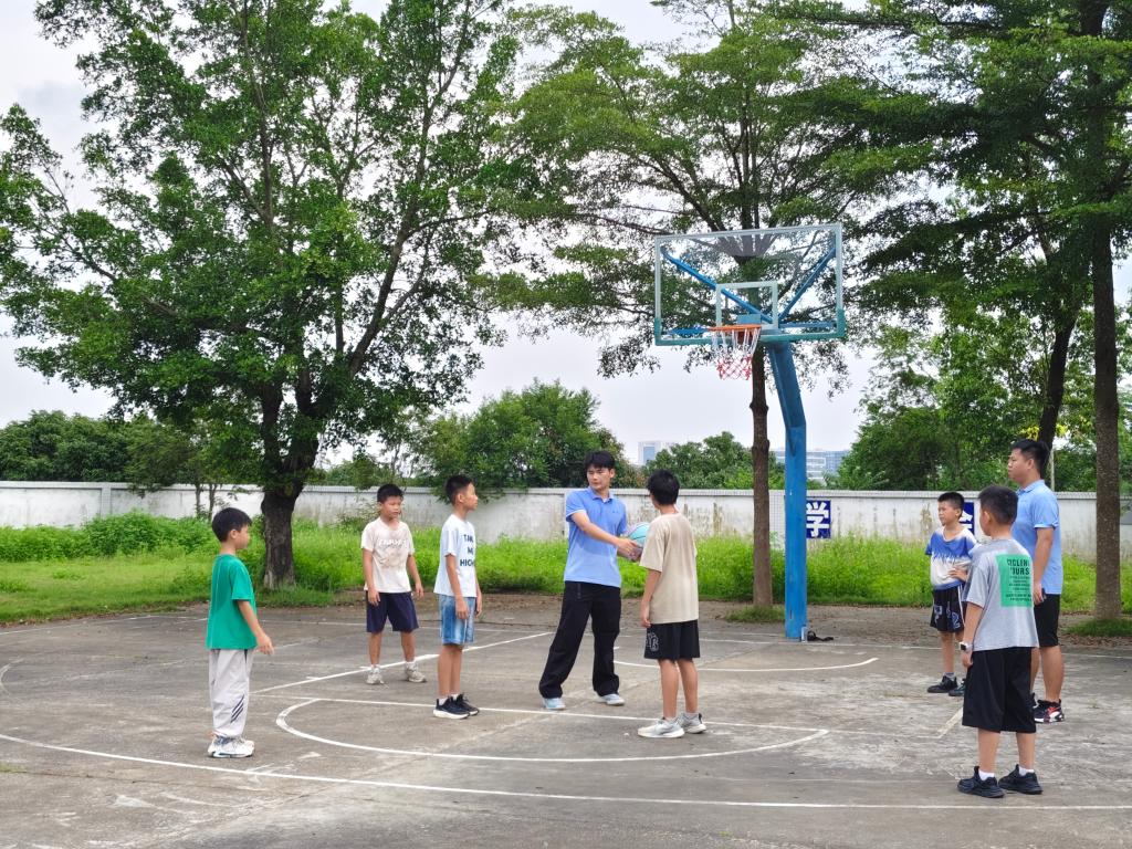 (通讯员:刘佳欣)为了张村小学的孩子们在篮球运动中收获快乐、实现成长,在球场上尽情挥洒活力、锤炼意志,点燃对体育的热爱,播撒梦想的种子,7月15日,广州理工学院薄言采之突击队走进张村小学。队员们携带专业的篮球装备,满怀教学热情,为孩子们开启了趣味盎然的篮球培训,让跳跃的篮球点亮乡村的快乐时光。