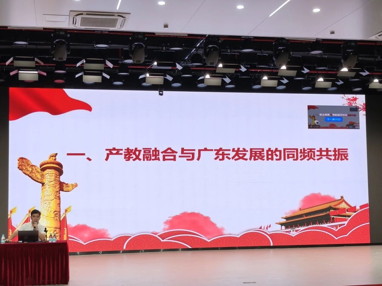 贺敏伟院长以“产教融合筑根基,铸魂引领启新程”为主题,从 “产教融合与广东发展的同频共振”“广东以‘人工智能 + 产教融合’激活高质量发展新动能”和“立足广东发展实践,培育产业赋能的青年担当者” 三个核心维度出发,结合政策解读与实践案例,为同学们系统梳理了广东在人工智能领域的发展蓝图与产教融合的现实路径。