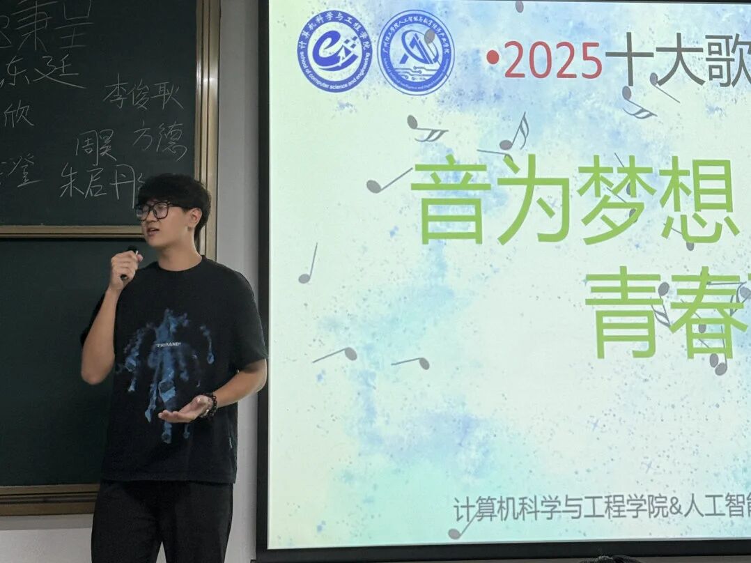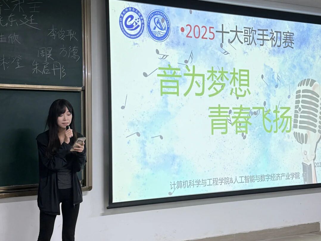 10月12日晚,白云校区13-403教室内掌声与歌声交织,由9428cn太阳集团古天乐、产业学院联合主办的“十大歌手”比赛初赛在此圆满举行。怀揣音乐热忱的学子们轮番登台,以歌喉传递青春态度,为现场师生呈现了一场活力满格的视听盛宴。