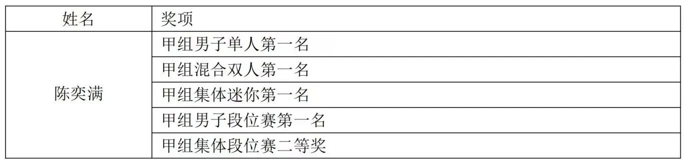 赛场之上,陈奕满赛前充分筹备、从容应战,全程严格恪守赛事规则,动作规范标准、舒展流畅,体式精准到位,既展现出扎实的瑜伽功底与高超竞技水平,更彰显出沉稳自信、积极向上的良好素养与精神风貌。经过三天的激烈比拼,他不负众望,成功包揽甲组男子单人、甲组混合双人、甲组男子段位赛、甲组集体迷你项目四项冠军,同时斩获甲组集体段位赛二等奖,用实力书写荣耀,为学院争光添彩。
