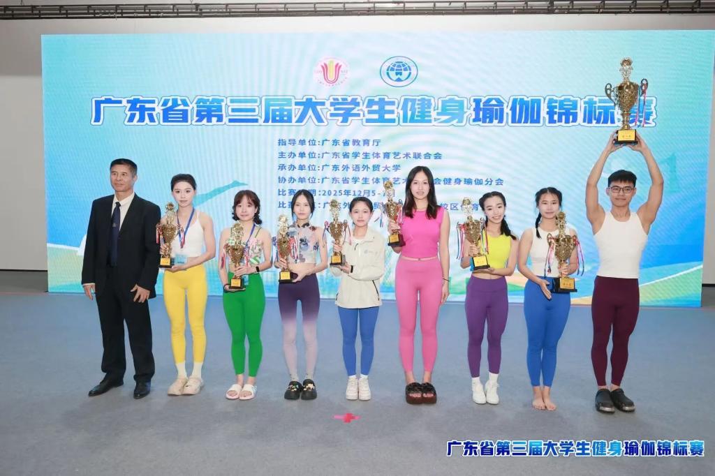 12月5日至7日,2025年广东省第三届大学生健身瑜伽锦标赛在广东外语外贸大学(白云山校区)体育馆圆满落幕。本次赛事由广东省教育厅指导,广东省学生体育艺术联合会主办,广东外语外贸大学承办,广东省学生体育艺术联合会健身瑜伽分会协办,是省内高校健身瑜伽领域的重要赛事。我院22计科9班学子陈奕满实力参赛,一举斩获4项单项冠军与1项集体二等奖,助力学院蝉联甲组团体总分第一名,再创赛事佳绩。