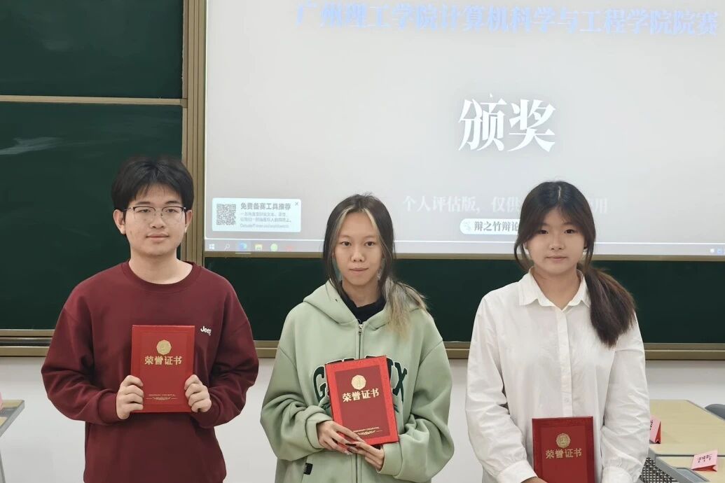 点评结束后,赛事结果正式公布:25计科6班凭借严谨的论证与出色的现场表现,最终斩获本次辩论赛第一名;25计科9班的陈惠雯凭借优异的临场发挥,获评本次比赛最佳辩手。