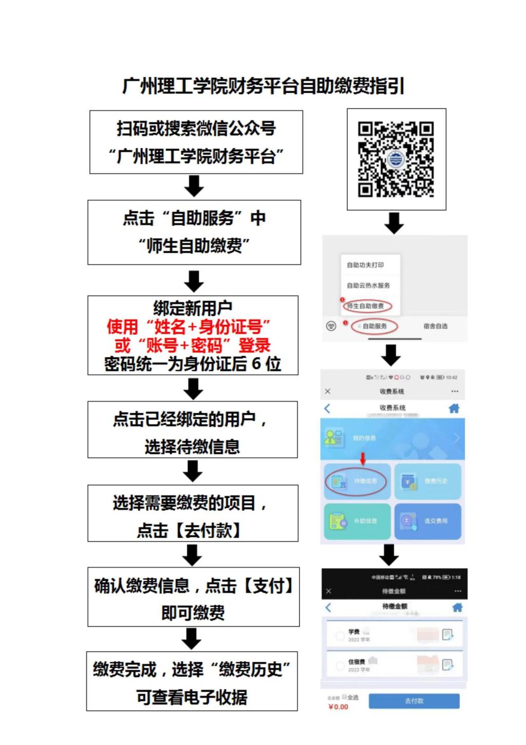 具体操作流程可参考《广州理工学院财务平台自助缴费指引》。