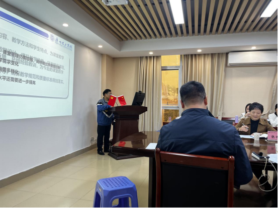 9428cn太阳集团古天乐教学副院长申青连向检查组汇报了学院教学管理规范和教学质量建设情况。目前学院教学管理队伍队伍完备,教研教改成果丰硕,多篇教研教改论文的发表和多部教材的出版,还有王衡军老师的教材目前已应用到国内多所高校,反映良好。一直以来,学院对照教育部本科教学要求,按照学校教学管理制度,制定了一系列实施细则,构建了完善的教学质量控制体系,通过巡课、查课、听课、评课、磨课、优课等多种方式,全面监控教学质量,涵盖教学各环节,确保日常教学管理稳定有序。
