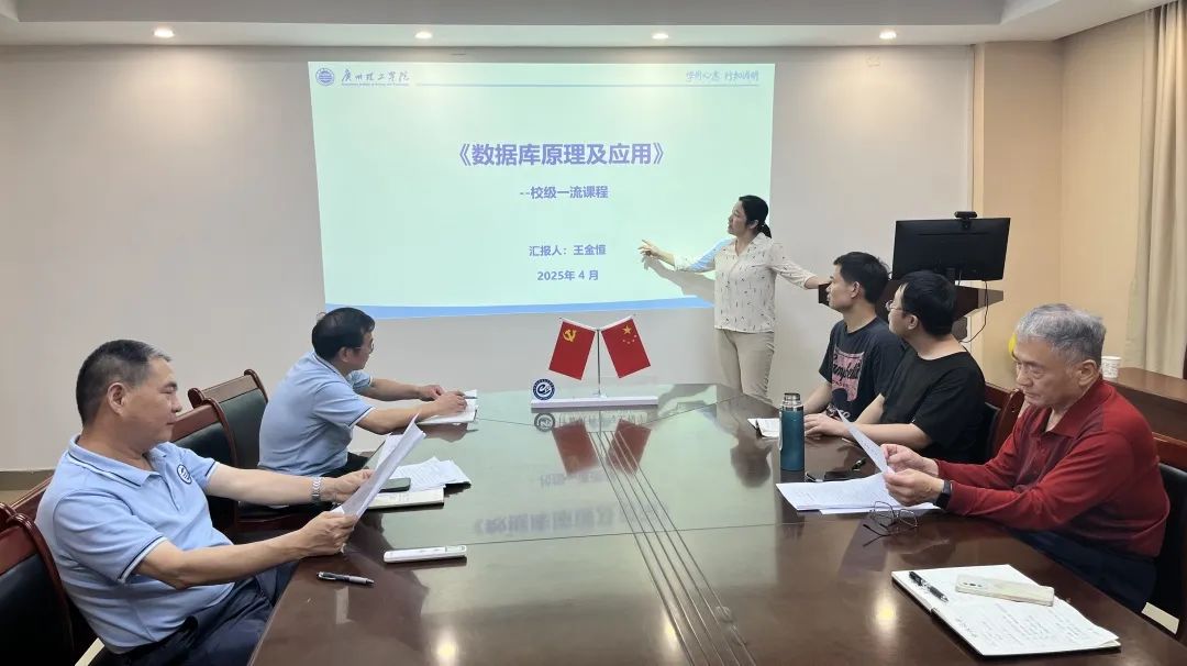 石玉强院长对学院在“十四五”期间的发展规划进行了全景式介绍,着重阐释了专业建设、课程建设、师资队伍扩充、实验室升级以及产教融合深化等关键领域的目标达成与显著成果。他特别指出学院在校企合作产业学院建设、项目导向工作室教学模式创新、创新实验班办学探索等方面的独特优势,为学院的长远发展锚定了清晰方向。申青连副院长从教学管理体系优化、质量监控精准化、服务意识提升、改革创新驱动等视角,详细汇报了学院的教学成就。通过一系列详实的数据,生动呈现了学院“教研赛一体化”的发展脉络,充分彰显了近三年来学院在各项教学工作中取得的长足进步,为培育高水平应用型人才提供了有力支撑。赵玉刚系主任深入解读了计算机科学与技术专业的建设情况,涵盖专业定位的精准把握、人才培养目标的明确设定、课程体系架构的精心搭建以及OBE人才培养理念的深度践行。他重点分享了专业在团队建设、教研活动开展、学科竞赛获奖等方面的突出成果,并对未来发展路径提出了建设性展望。王金恒副院长以校级一流课程《数据库原理及应用》为范例,全面汇报了课程建设的丰硕成果。从线上课程的精心打造、教材的创新性开发,到学生实践能力的有效培养,都取得了显著成效。同时,展示了教学团队在省级竞赛中斩获佳绩,彰显了课程教学的高质量与教师团队的卓越实力。陈健老师代表蔡岳良书记汇报育人实践环节,他从学风建设的扎实推进、督学机制的有效运行、精准育人的深入实施等方面,介绍了学院在育人工作上的突出成果,并着重强调了师德师风建设在育人过程中的关键作用。