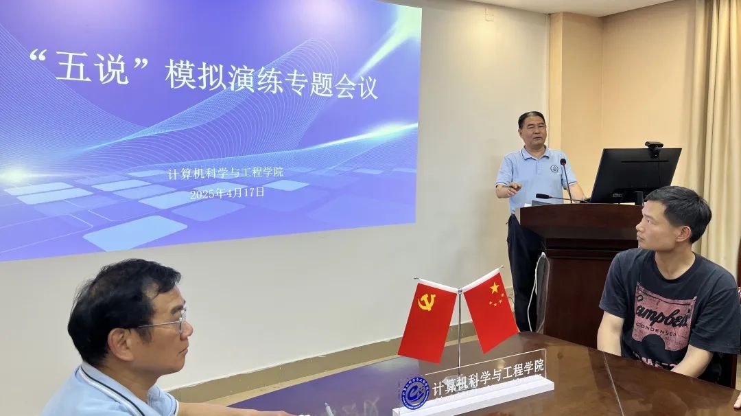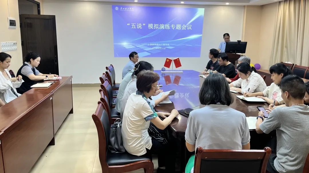 (通讯员:潘予洋)4月17日下午,计算机科学与工程学院于4-303会议室成功举办“五说”模拟演练专题会议。本次会议由学院院长石玉强主持,教学副院长申青连、副院长王金恒、系主任赵玉刚、评估负责人以及相关行政人员齐聚一堂,共同围绕“五说”模拟演练汇报及评建工作展开深入交流与探讨,旨在全方位展现学院在教学管理、专业建设、课程建设、育人实践等多维度的卓越成果,为即将到来的迎评促建工作筑牢根基。