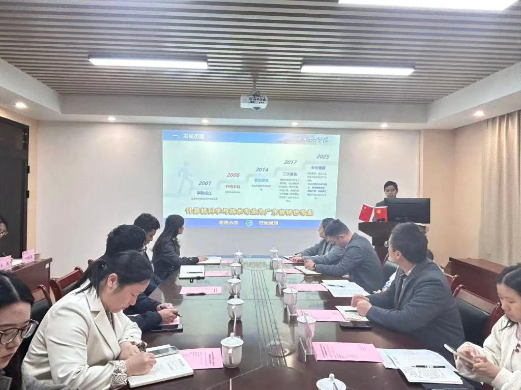 贺敏伟院长重点汇报了以下亮点工作:一是教学成果丰硕,学院教学案例获评全国特色教学案例,并获广东省民办高校思政教育类优秀成果认可,同时获得省级教学成果特等奖。二是产教融合深化,学院已获批省级现代产业学院,构建了“工作室-创新班-产业学院”三位一体的人才培养模式,与网易、软通、佳都等龙头企业共建校外重点实习基地和项目交付中心,让学生深入参与真实企业项目。三是实践教学强化,学院拥有13个特色工作室、45个校外实验基地,通过“四个一工程”推动学生全员参与学科竞赛,并在A类竞赛中屡获佳绩。四是质量监控有效,建立了多层次听课磨课机制及“5G信息反馈”等过程管理体系,保障教学质量持续改进。近三年毕业生平均就业率保持高位,学院获评全校就业工作优秀奖。